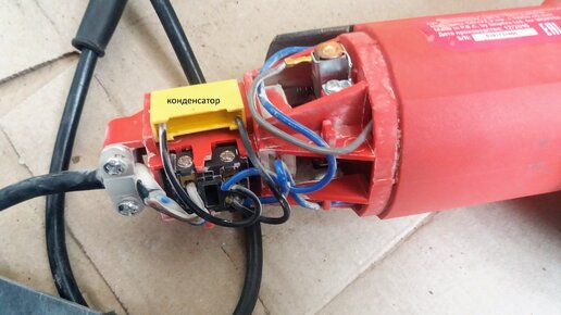 Маленький, но необходимый конденсатор в питании коллекторного двигателя электроинструмента. Не отключайте его
