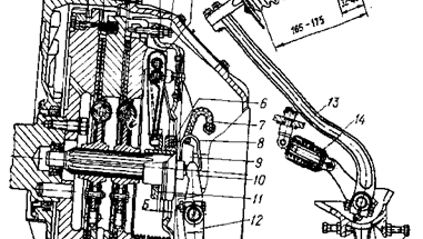 Регулировка сцепление. Сцепление (рис. 15) регулируется в два этапа: вначале регулируется величина отхода среднего ведущего диска 25 (зазор А) для обеспечения необходимых зазоров между рабочими поверхностями сцепления при его выключении, а затем-свободный ход педали (зазора Б). Поэтому надо строго соблюдать указанный порядок регулировки. Порядок регулировки зазора А: 1-Устоновить рычаг переключения передач в нейтральнее положение. 2-Снять крышки 20 и 24 люков картера сцепления и картера маховика...