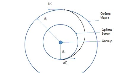 А вот теперь давайте определим, а сможем ли мы какой-либо массивный объект докатить до Луны? А почему только до Луны? Давайте сразу — до Марса. Для этого традиционно применяется схема полета, известная как «орбита Гофмана». Итак, для выхода аппарата на расчетную траекторию полета к Марсу ему необходимо достигнуть скорости не менее 11,6 км/с, то есть чуть больше второй космической скорости, что позволяет выйти за пределы гравитации Земли. Условно примем, что на орбите в зоне строительства аппарат имеет скорость 8 км/с...