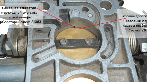 Выходное отверстие переходной системы второй камеры карбюратора Солекс