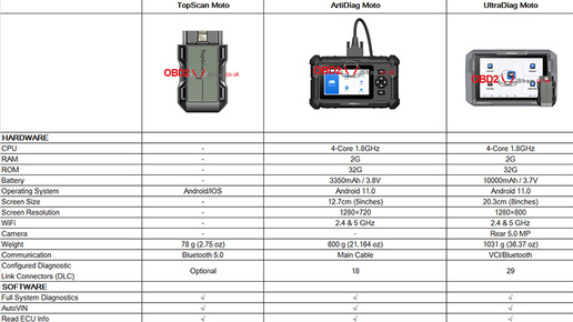 TopScan Moto против ArtiDiag Moto против UltraDiag Moto