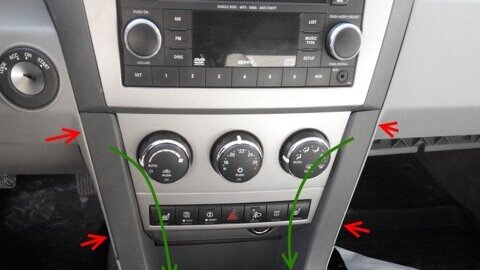 Многие пользователи Dodge Avenger II сталкивались со снятием передней консоли. Все искали в интернете, ведь хочется иметь хоть какой-то мануал, но вряд ли кто-то находил. Прежде всего необходимо снять ручку АКПП Для этого просто тянем её наверх и она слезает. Следом надо снять хромированную окантовку ручки АКПП Для этого используем или специнструмент типа пластиковой отвёртки или обворачиваем обычную отвёртку тканью и поднимаем в районе красных стрелочек (там защёлки). Всё снимается просто и без особых усилий После необходимо вытащить ящик для документов...
