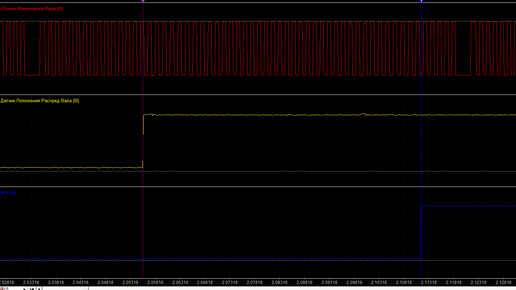 Канал №2 Осциллограмма Датчика положения коленчатого вала ДПКВ Канал №3 Осциллограмма Датчика положения выпускного распредвала ДПРВ Канал №4 Осциллограмма Датчика положения впускного распредвала ДПРВ 15 полных зубов до фронта сигнала...