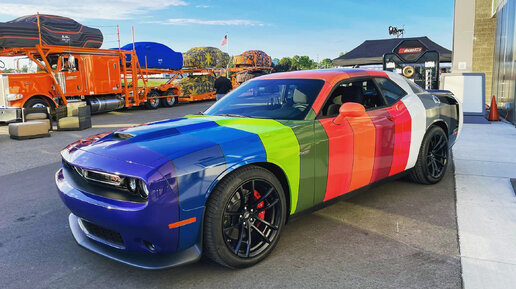 Dodge совместно с ателье DodgeGarage разработал необычную расцветку для Challenger 2023 модельного года – за доплату на кузов можно нанести все 14 фирменных цветов из палитры разом. Опция получила название Hi-Impact Colors и стоит 3,7 тысячи долларов (227 тысяч рублей по курсу сегодняшнего дня). Есть еще пара нюансов – она будет доступна ограниченное время и для других моделей Dodge ее заказать нельзя. Такой Challenger на самом деле не окрашивается в разные цвета – на кузов наносятся полосы 14 фирменных...