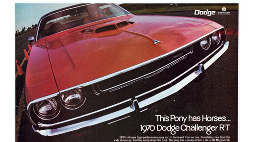 Реклама передней части Dodge Challenger 1970 года Несмотря на то, что Dodge Challenger был последним игроков в рейтинге пони-каров Большой тройки Детройта (Chrysler Group LLC , General Motors и Ford...