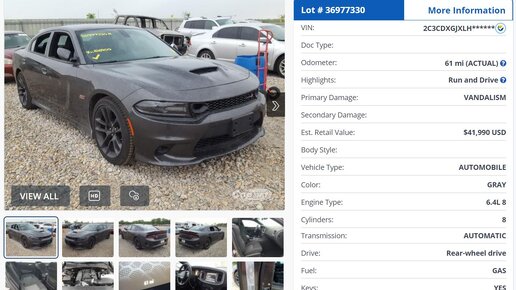 Перед нами еще одна легенда американского автомобилестроения! Культовый автомобиль на все времена! Найдется хоть один автомобилист, который не обернется вслед этому красавцу? Сомневаюсь, но обо всем по порядку! Нет абсолютно никакой ошибки в заголовке и мне действительно попался на глаза новенький Dodge Charger, который выставили на аукцион аварийных автомобилей с пробегом около 100 километров! Смотрите сами, год выпуска 2020 и пробег 61 миля, это примерно 98,17 километра! На автомобильном рынке...