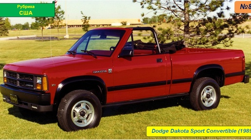 В 1989 году был представлен кабриолет Dodge Dakota Convertible, который также был доступен в исполнении Sport. Производство пикапа-кабриолета продолжалось по 1991 год, а в первый год было сделано 2482 экземпляра Dakota Convertible. Строились открытые машины в партнерстве с компанией ASC (American Sunroof Company). Автомобиль получал жесткую фиксированную дугу безопасности и складываемый вручную мягкий тент. Базовый кабриолет строился на основе пикапа с колесной базой 2842 мм (длина машины 4722 мм, ширина 1763 мм) и грузовой платформой длиной 198 см...
