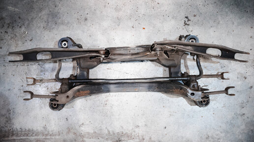 Как покалечить задний подрамник Додж Джорни? Знаете как покалечить подрамник Додж Джорни? Достаточно наклеить шильдик R/T на машину с двигателем 2.4 и полезть форсировать поля с обилием спрятанных в траве камней, после чего долго искать эвакуатор и упорно приводить машину сначала в подвижное состояние, на троечку с минусом, а уж потом – в человеческое. Вы думаете мы шутим? Увы. Перед вами задний подрамник в сборе с рычагами, давайте внимательно его рассмотрим, может есть что живое. Задние нижние...