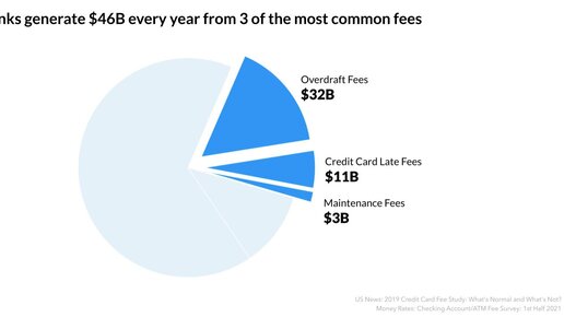 Каждый год американские банки собирают 46 миллиардов долларов штрафных комиссий, из которых 43 ярда только по двум пунктам: 1. Overdraft Fees: штраф за то, что пользователь случайно потратил денег больше, чем было на счете. 2. Credit Card Late Fees: штраф за просрочку минимального платежа по кредитке. На самом деле, я именно поэтому закрыл свою последнюю кредитку много лет назад: постоянно какие-то непонятные снятия денег, вечно надо быть на нервах и следить, не дай бог улететь в overdraft...