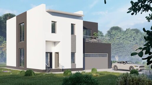 Классный дом с удобной планировкой. Проект дома с гаражом, большим балконом и панорамным остеклением