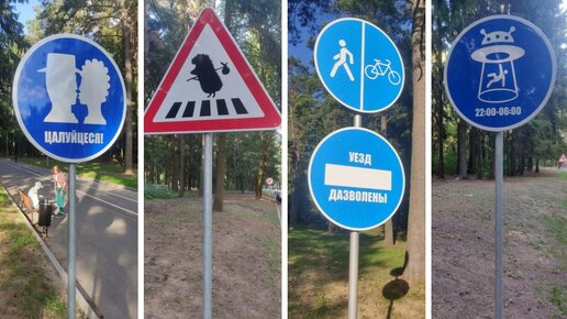 «Целуйтесь!» — В Беларуси появились необычные дорожные знаки: разрешают всюду ходить, кататься на великах, и предупреждают об НЛО — Фото