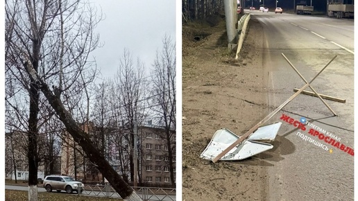 В связи с усилением ветра. Экстренное предупреждение соответствующие службы опубликовали еще накануне. В течение нескольких часов ветер был сильным, но, что называется, без последствий. А потом началось. По словам очевидцев, на улице Гагарина «устал» тополь. Дерево серьезно наклонилось и вполне может упасть. А около дома №26 по проспекту Октября сухое дерево упало, задев при этом три припаркованных автомобиля. Как говорят ярославцы, за считанные секунды до инцидента там проходили три человека. Шли бы они чуть попозже и вполне могли оказаться под обломками...