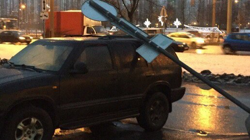 Дорожный знак упал на машину. Что делать?