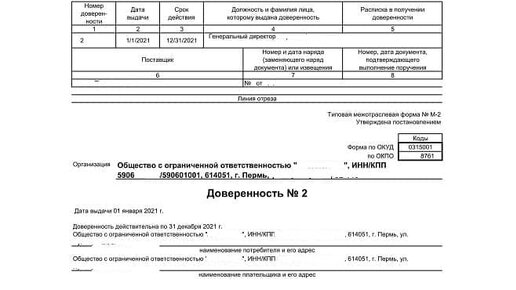 Доверенность на перевозку и получение груза