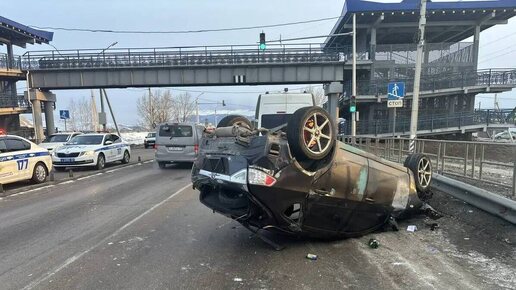 В Улан-Удэ водитель «Subaru» опрокинул машину после столкновения с припаркованным «Hyundai Solaris»