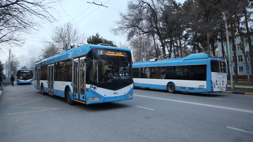 Троллейбус. На удивление хорошо и стабильно работающая система из 8 маршрутов. Действуют 2 депо. Сейчас в таджикской столице используется только одна модель белорусского производства БКМ-321OOD. Всего на балансе около сотни машин, все они оборудованы увеличенным автономным ходом. Тут надо отметить, что в Таджикистане в принципе не любят такие ограничительные штуки, как провода, сковывающие весь полёт фантазии водителя и размах...