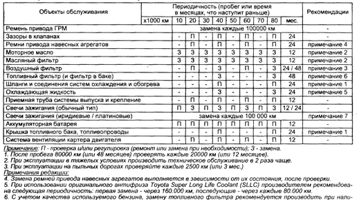 MARK II / CHASER / CRESTA / CROWN / PROGRES / BREVIS / ARISTO / LEXUS GS300 / SOARER / SUPRA / ALTEZZA GITA / LEXUS IS300 Любой агрегат автомобиля нужно обслуживать с периодичностью определенного пробега, в данной модели двигателей эти данные представлены в таблице ниже Объемы заправочных емкостей : Моторное масло в двигателе : Замену моторного масла в двигателе необходимо производить каждые 10000км...