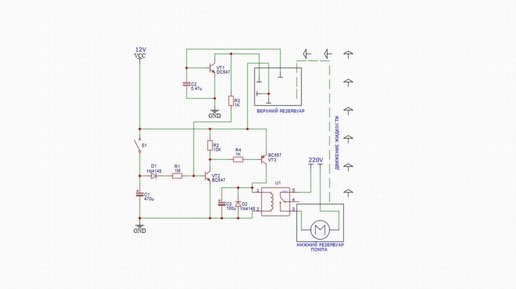 Рассмотрим пять простых схем как защитить двигатель от работы всухую, с определением недостаточного уровня воды в нижнем резервуаре, без использования датчиков внутри резервуара. Что исключает возможность работы двигателя всухую. Схемы также включают функции контроля перелива воды через верх. Принцип работы предлагаемого устройства защиты двигателя подземного водяного насоса от сухого хода можно понять, изучив следующие детали: