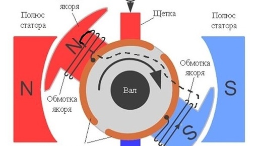 Принцип действия двигателя постоянного тока - взаимодействие электромагнитов между собой