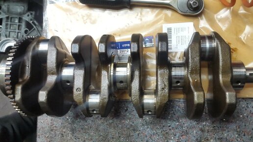 К нам обратился владелец Hyunda Santa Fe производства январь 2013 года. Автомобиль приобретался с пробегом 40000 км, масло использовалось Shell 5w30 и заменялось через 15000 км. Через 32000 км двигатель G4KE встал. Мотор демонтирован. При снятии шкива коленчатого вала открылся вид на разорванный сальник, масло лилось обильно Головка блока демонтирована и по плоскости в удовлетворительном состоянии А вот по распредвалам есть большая выработка. И обратите внимание на крышки распредвалов, ничего не смущает? Да, это ГБЦ от 4B12 Коленвал оригинальный G4KE Mobis...