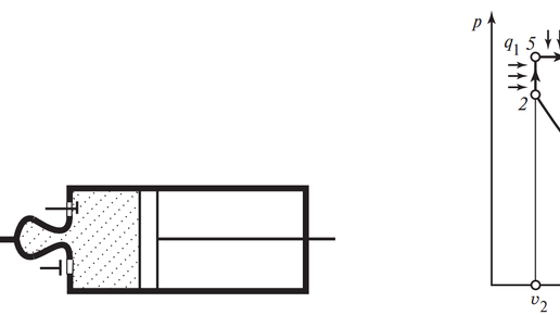 По имени русского инженера Г.В. Тринклера, впервые предложившего этот цикл в 1904 г. появился своего рода «гибрид» циклов Отто и Дизеля ,цикл со смешанным сгоранием , или цикл Тринклера. Двигатели, работающие по этому типу, имеют так называемую форкамеру, соединенную с рабочим цилиндром узким каналом. На рисунке ниже показан цикл такого двигателя в р, v-диаграмме. В рабочем цилиндре воздух адиабатически сжимается за счет инерции маховика, сидящего на валу двигателя, нагреваясь при этом до температуры, обеспечивающей воспламенение жидкого топлива, подаваемого в форкамеру (процесс 1-2)...