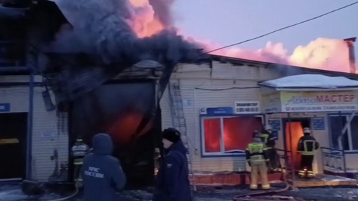 Двухэтажный автосервис выгорел в Учалах Башкирии.
