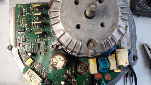 Всем здравствуйте! Сегодня у нас интересный ремонт вентилятора ebmpapst rg148 от котла Baxi модель котла не знаю. Проблема - не включается, котёл выдаёт ошибку. Вот так выглядит вся эта конструкция. На всякий случай сделал фото исправных элементов и видимых номиналов деталей. Силовые транзисторы irf830 А у нас проблема как в итоге оказалось крылась на поверхности. С таким дефектом я столкнулся впервые. При включении в сеть ничего не сгорает и не греется. Ну для начала сделал замер на выходе диодного моста...