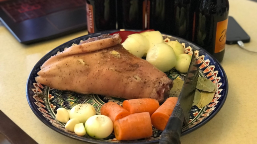Рулька в темном пиве в казане