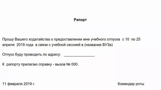 Руководство по корректной подаче рапорта Нормативно-правовые акты: Федеральный закон от 02.05.2006 № 59-ФЗ «О порядке рассмотрения обращений граждан Российской Федерации». (https://www.consultant.ru/document/cons_doc_LAW_59999/) Указ Президента Российской Федерации от 10.11.2007 № 1495 «Об утверждении общевоинских уставов Вооруженных Сил Российской Федерации». (https://www.consultant.ru/document/cons_doc_LAW_72806/) Приказ Министра обороны Российской Федерации от 04.04.2017 № 170 «Об утверждении Инструкции по делопроизводству в Вооруженных Силах Российской Федерации»...