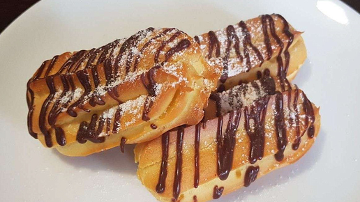 Классические эклеры невероятно вкусны, но могут быть пагубны для фигуры- можно "облегчить" данное лакомство наполнив их взбитыми сливками. Тесто - Масло сливочное 100г - Вода 1стакан - Соль 1щепотка - Яйца 5шт. - Мука 1стакан Крем - Ванильный сахар 8г - Яйца 1шт. - Сахар 100г - Мука 2ст. л. - Молоко 1стакан - Масло сливочное 150г 1. Для начала приготовим заварное тесто. Для этого в сотейник наливаем 1 стакан воды и добавляем 100 грамм сливочного масла и щепотку соли. Ждем, пока масло полностью растворится, а жидкость начнет закипать...