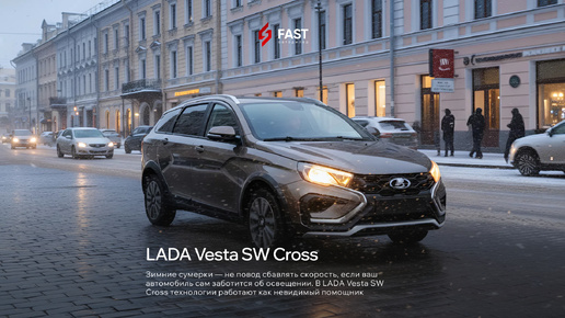 Зимой водить сложнее из-за темноты и плохой погоды. В такие моменты выручает качественный свет. Инженеры оснастили LADA Vesta SW Cross яркой светодиодной оптикой уже в базовой версии. Эти фары отлично освещают дорогу в метель и помогают водителю видеть все детали пути. Одна из ключевых особенностей модели — продуманная система освещения. Светодиодная оптика и задние фонари активируются одновременно с запуском двигателя. Автомобиль сразу заметен в потоке, что особенно важно в зимние сумерки и снегопад...