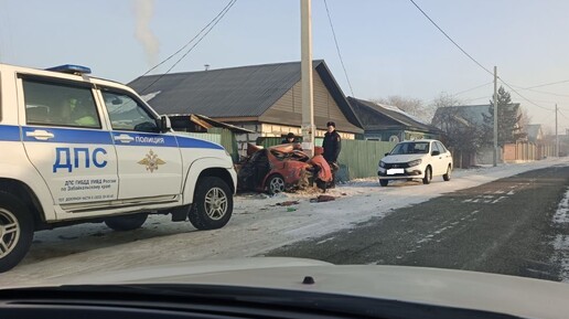 Toyota Carina протаранила столб в Засопке под Читой