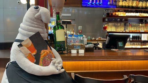 У Ждуна не только безграничное терпение, но и весьма подкованный правообладатель с хорошими юристами. Только несведущие могут подумать, что Ждун — это народный мем, на самом деле изначально это арт-объект нидерландской художницы Маргрит ван Бреворт, а в России его коммерческими правами распоряжается компания CD Land. Владельцы Shannon’s Irish Bar в Шереметьево, кажется, об этом не догадывались, иначе бы они не посадили Ждуна перед барной стойкой в качестве рекламы своего заведения. Плюшевый сотрудник в черном фартуке устроился на высоком барном стуле и встречал гостей с меню в руках...