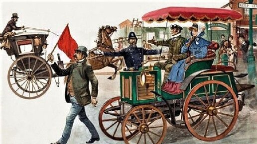 Автомобиль с красным флагом — история Правил Дорожного Движения прошлых веков