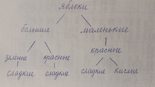 Будем рассуждать. Разделим все яблоки на большие и маленькие 👇 Известно, что все маленькие яблоки - красные 👇 А все кислые - маленькие. Но это не значит, что среди маленьких нет сладких яблок. Они есть...
