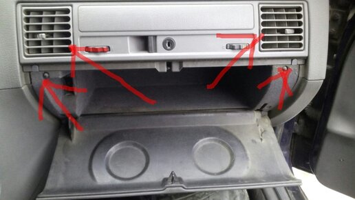 Может и полезно будет кому.) Это первое, что нужно сделать, если вы хотите снять бардачок . Снимаем дефлекторы воздуховодов печки и заглушки. После чего вы сможете открутить крепеж бардачка. Все очень просто и легко...