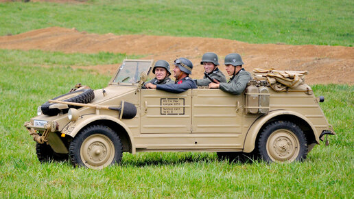 Фольксваген тип 82 (Кюбельваген) - германский легковой автомобиль повышенной проходимости военного назначения, серийно выпускавшийся с 1939 года по 1945 год и ставший самым массовым автомобилем германской армии во время Второй Мировой войны. Для упрощения изготовления автомобиль тип 82 был максимально унифицирован в производстве с гражданской моделью Фольксваген "Жук". Автомобиль тип 82 отличался от гражданской модели "Жук" специальным облегченным открытым 4-дверным кузовом с плоскими панелями,...
