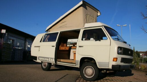 Этот кемпервен Volkswagen T3 Westfalia единственный в своем роде, так как имеет удлиненный кузов и в то же время полный привод. Вы когда нибудь видели удлиненные Volkswagen T3? Joker - это удлиненный вариант...