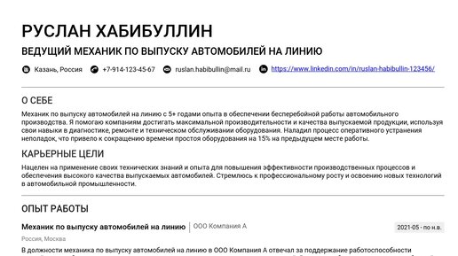 Пример резюме механика по выпуску автомобилей на линию 2025 - Советы