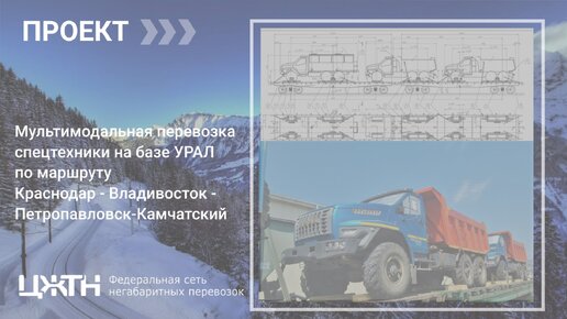 Компания ЦЖТН завершила работу над мультимодальным проектом по перевозке, а также размещению и креплению четырех спецавтомобилей на базе УРАЛ (код ЕТСНГ 381091) на универсальной четырехосной платформе со станции Афипская (г. Краснодар) до Владивостока (дальневосточная ЖД), с дальнейшей переправой до порта Петропавловск-Камчатский. Гарантии компании ЦЖТН как грузоотправителя Как грузоотправитель, наша компания выступила гарантом безопасности движения поездов и сохранности перевозки спецтехники на базе УРАЛ-32551-5013-71 и УРАЛ-55571-5121-72...
