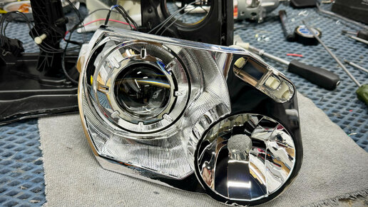 Всех приветствую! Сегодня у нас в студии Land Rover Freelander 2. Штатно автомобиль на ксеноновой оптике, свет от которой, мягко говоря, не очень. Наша задача максимально улучшить свет, заменить устаревший ксенон на современное Led решение, привести в порядок стекла и реализовать систему ДХО на автомобиле. Приступаем. Состояние фар до начала работ: Видно серьезный нагар внутри стекол, снаружи множество микротрещин. Линзы мутные и дают разный световой пучок. Демонтируем фары, снимаем с них все навесное и отправляем в печь...
