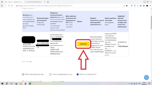 На официальном сайте ФССП каждый может получить информацию из банка данных исполнительных производств, в которой содержатся общие сведения по исполнительным производствам – ФИО должника, дата рождения, номер исполнительного производства, дата его возбуждения, сумма остатка задолженности по исполнительному производству, отдел и должностное лицо ФССП, в работе которого находится исполнительное производство. Слева от информации об остатке суммы задолженности обычно расположена кнопка «Оплатить». Открыв информацию по исполнительному производству, взыскатель может обнаружить отсутствие этой кнопки...