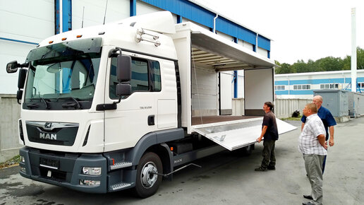 Фургон с системой открывания створок типа бабочка, очень удобно и функционально Приветствуем Вас друзья в этом обзоре вам будет представлен фургон бабочка на грузовике MAN TGL 12 250 от компании СибЕвроВэн...