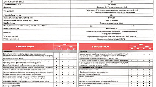 Стали известны названия комплектаций и список опций, предлагаемых для GAC GS8 в России GE Для машины на старте продаж предложат один двигатель и два типа привода-передний или полный. Коробка передач в обоих случаях 6-ступенчатый "автомат" от Aisin...