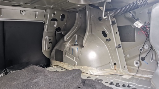 С чего начнём снятие обшивки багажника в Рено Логан 2? Ну конечно же освобождаем багажник от всего хлама: Откручиваем барашек и снимаем домкрат с левой стенки багажника: Отщёлкиваем из зажимов на правой стенке багажника транспортировочный болт и балонный ключ и снимаем их: Вынимаем коврик и лист ковролина с шумоизоляцией и видим пол багажника с запасным колесом в нише: Освобождаем обшивку левой стороны багажника, открутив 2 гайки и сняв 2 клипсы: Снимаем обшивку левой стороны багажника: Освобождаем...