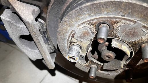 ) Напомню, что не все гайки одинаковые и в этот раз гайка у нас сломалась в момент откручивания колеса. Очень повезло, что она обломилась после шляпки и не пришлось ничего сверлить. А если такое случится в дороге? Вывод: не экономьте на гайках колес, господа...