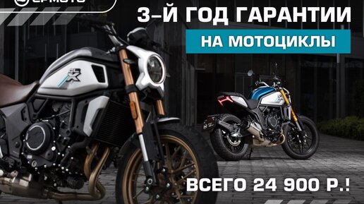 По многочисленным просьбам покупателей мотоциклов мы решили расширить Программу 3-го года гарантии! Теперь она действует и на мотоциклы CFMOTO! Все клиенты, приобретающие новую мототехнику CFMOTO у официальных Дилеров, смогут увеличить за дополнительную плату срок гарантии на мотоцикл до 3-х лет. При этом не вводится никаких дополнительных ограничений по пробегу и сменам владельцев в период действия гарантии (привязывается к конкретному VIN-номеру). Возможно воспользоваться данной Программой в течение 1 года после покупки техники...