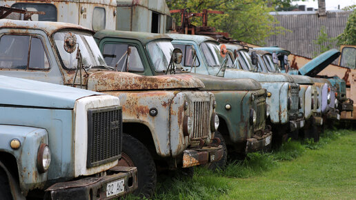 В заключительной части обзора про убежище старой техники в Ярва-Яани, покажу грузовые и легковые автомобили. Здесь сохранили советское прошлое автомобильной промышленности. Грузовики ГАЗ сбились в стаю...