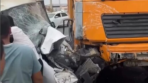 Грузовик смял «Газель» в Актау: видео спасения водителя появилось в сети