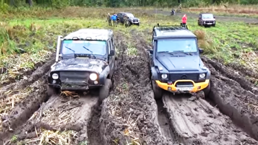 Гелендваген против УАЗа по грязи. Все дело в резине или в "прокладке"?